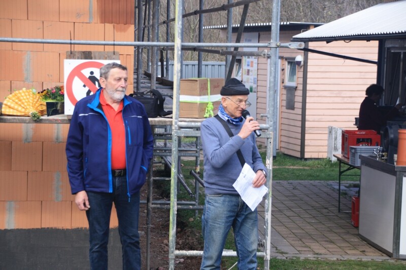 Obwohl es nach dem ersten Spatenstich am 1. Oktober 2022 zu „Startschwierigkeiten“ kam und das Wetter uns zusätzlich einen Strich durch das Bauvorhaben machte, konnte seit Januar 2023 täglich beobachtet werden, wie das Vereinshaus emporwuchs. Und endlich war es dann so weit. Bei Sonnenschein versammelten sich am 21.04.2023 rund 60 Oberfrauendorfer auf dem Dorfplatz, um den Festakt mitzuverfolgen. Ortsvorsteher Martin Walther, Heimatvereinschef Klaus Köhler, Zimmerermeister Marco Göbel und Bürgermeister Sven Gleißberg schlugen symbolisch die letzten Nägel zum Richtfest ein. Der Heimat- und Kulturverein „An der Lockwitzquelle“ sorgte für das leibliche Wohl und es wurde mit einem Glas Sekt auf das Richtfest angestoßen. Kaffee, Kuchen und Bratwurst standen kostenfrei zur Verfügung. Anschließend konnte unter Leitung von Klaus Köhler der Rohbau besichtigt werden. Das Interesse war groß – wollte doch jeder wissen, wie die zukünftigen Räume einmal nutzbar sind. Seine erste Teilnutzung erfährt das Gebäude zum bevorstehenden Dorffest am Himmelfahrtswochenende.